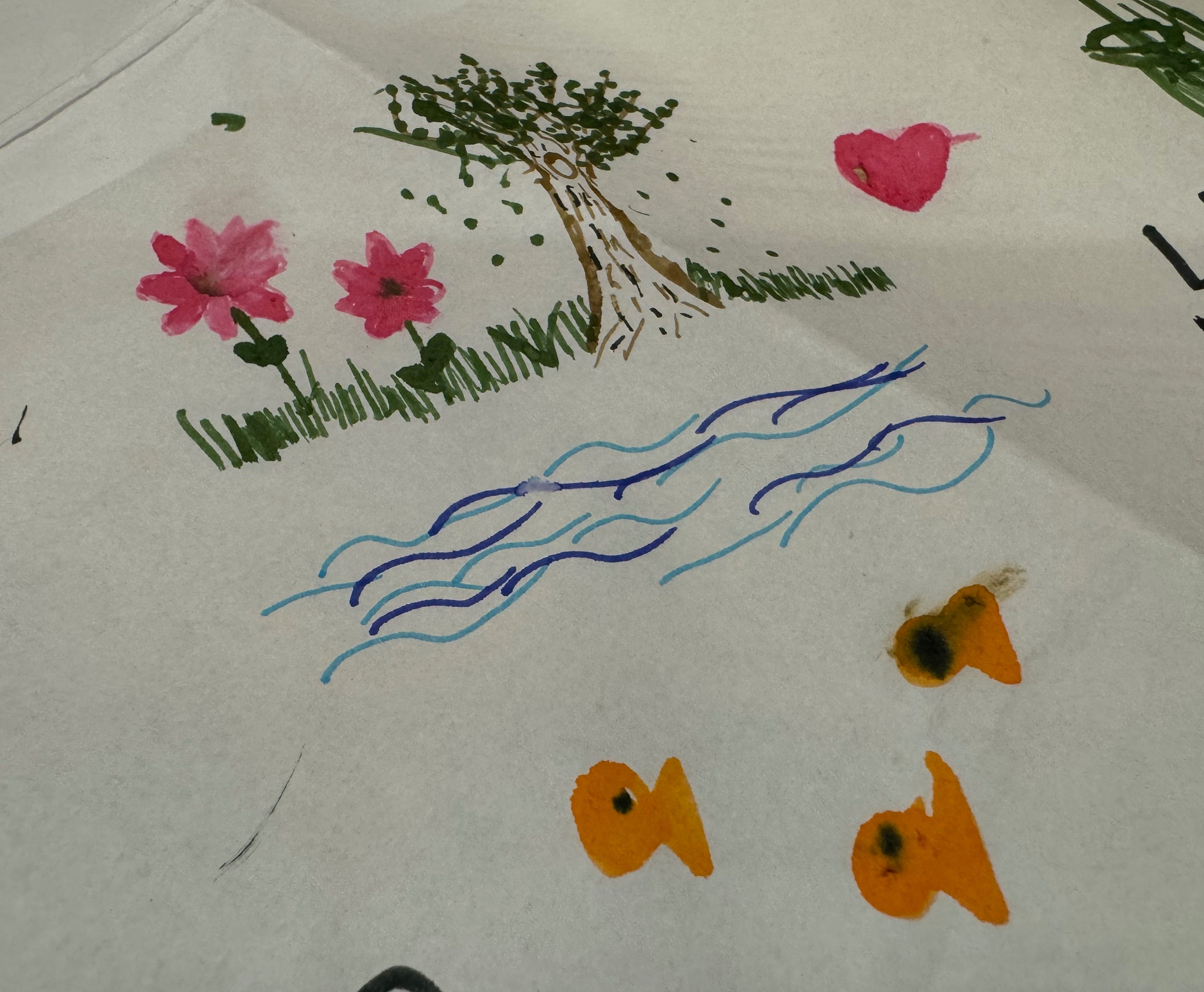 We played noughts and crosses - fun yes for about a millisecond but just over far too quickly. A bit like Connect 4 only quicker and with no equipment required. And then Hangman which I always loved and still do. Then my youngest drew a beautiful picture (below). Under the bright lights and out of boredom we made our own fun. And nobody fell into an individual digital abyss or at the meer sniff of not being stimulated did reach for our phones (except for me to document what I knew would be evidence for my next blog).