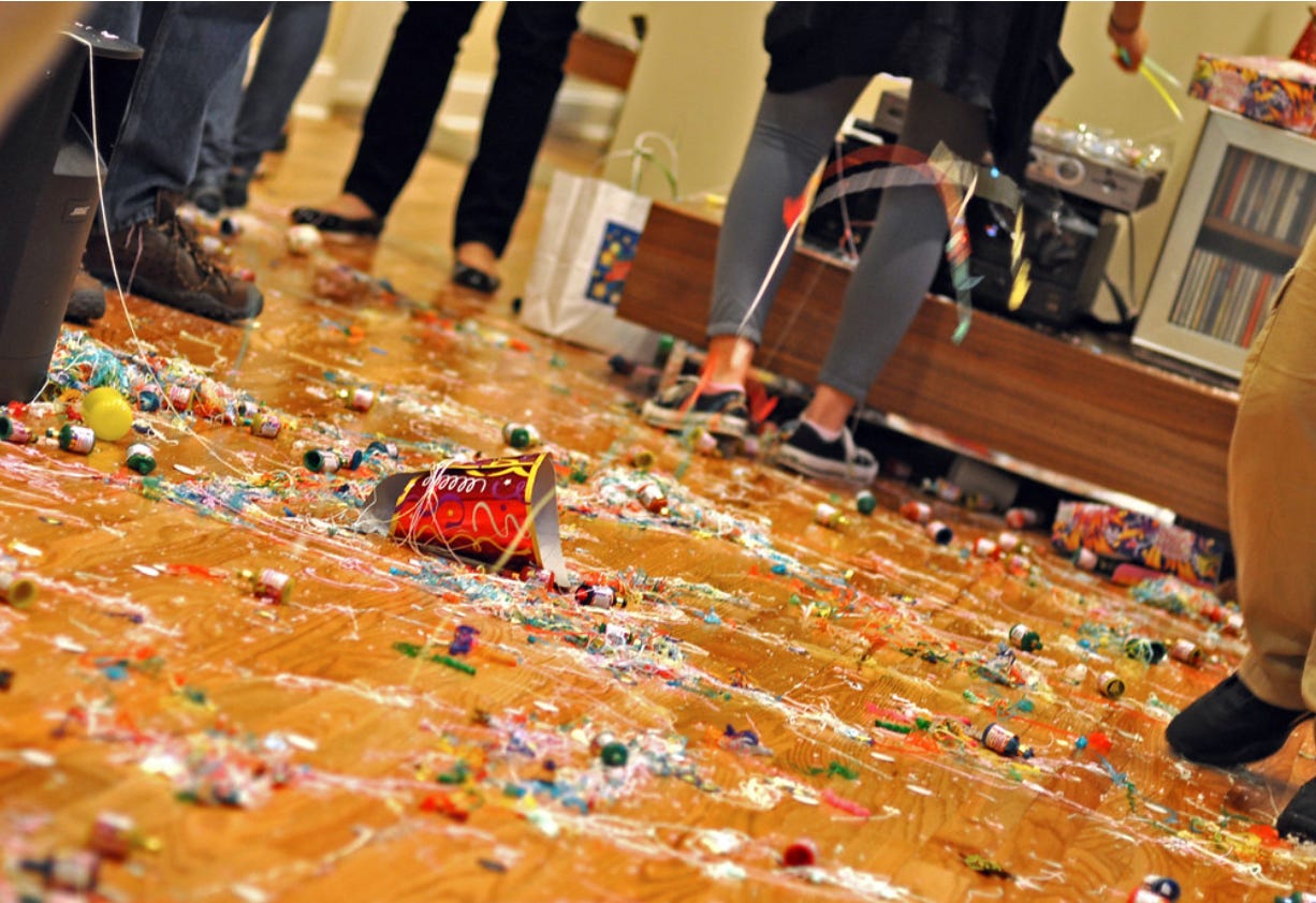 A couple of weekends ago, we had been invited to our neighbour’s 80th birthday party. This lady lives alone and had decided to take it upon herself to organise all of it, in the village hall. The music (she played in the band that was entertaining), the food, the drinks, the albeit minimal tablescaping, in short everything that this blank hall needed to look and feel like a party. And then of course four or so hours later, pulling it all down and putting it either into boxes or into the bin. Having witnessed how frantic she was all night and then helping her tidy up afterwards, I wondered whether you could call it a party for yourself or if it was more accurate to say it was an endurance test of getting through time sensitive tasks. Even in her thank you letters she expressed regret at not getting around to talk to everyone and socialise and catch up properly with everyone that had come along (some from afar), to mark the occasion.