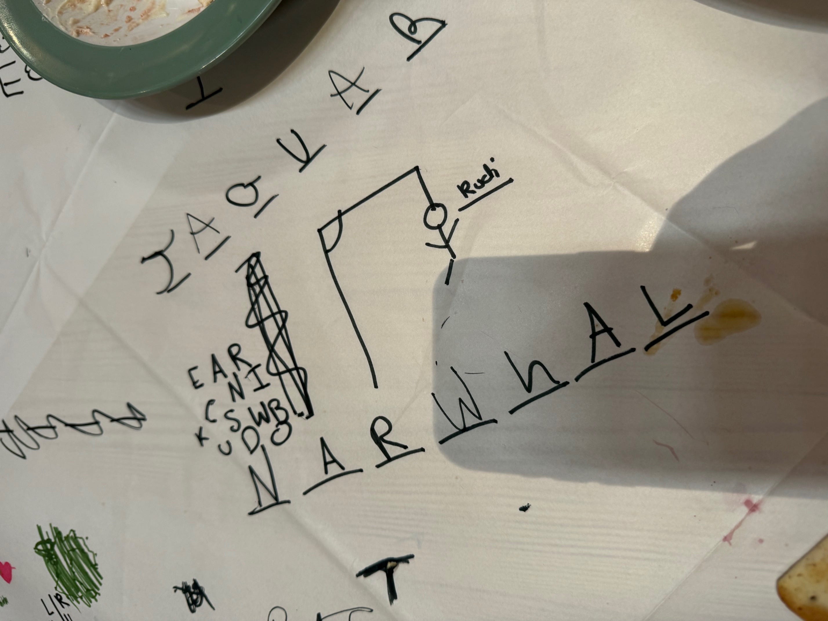 Anyway back at the 80th bash. My youngest was bored and had an awful headache. That probably was a bit of a fib to begin with to try and avoid actually going at all but with the words ‘I’ve got a headache,’ whirring and then a very loud brass band that wouldn’t relent, I am sure it did actually get a lot worse. We didn’t really know anyone, there was nobody dancing at all and the overhead lights were just so punishing and so unconducive to any sort of ambience that we opted at that point not to doom scroll neither exit but with some pens and a paper table cloth in-front of us, to play some old school games instead.